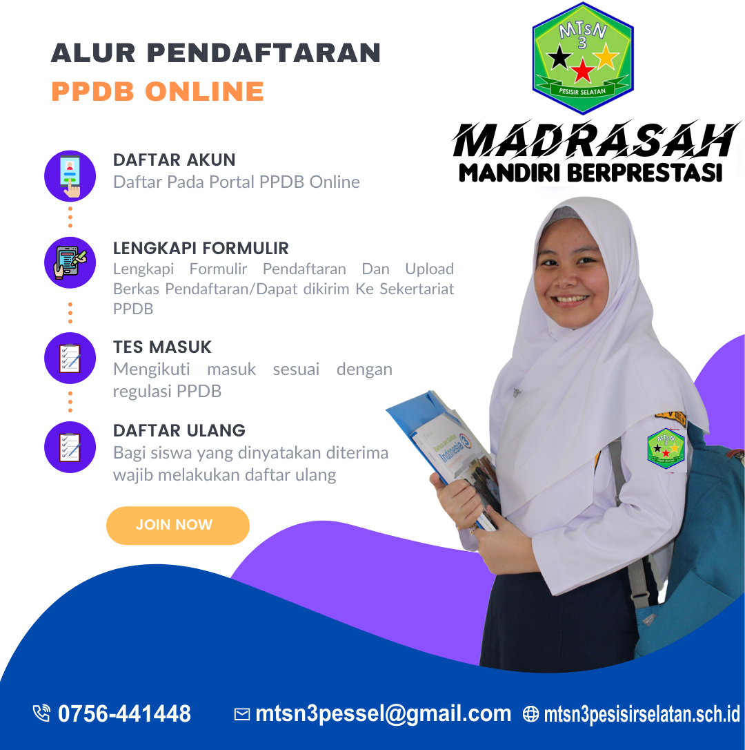 Aplikasi Penerimaan Peserta didik baru Tahun Pelajaran 2022/2023 MTs NEGERI 3 PESISIR SELATAN.